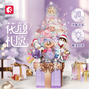 ★牛把拔★《森寶605042》聖誕系列/花顏禮願聖誕樹/帶音樂附LED燈/聖誕禮物/交換禮物/八音盒/益智拼裝積木兼容樂高磚