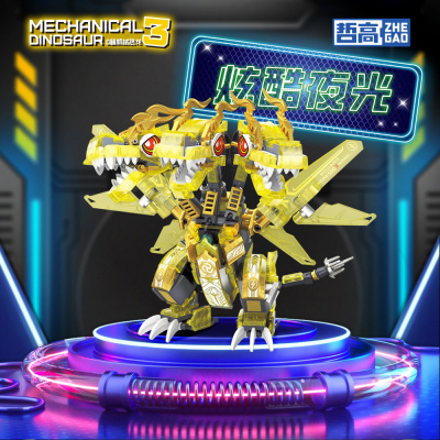 ★牛把拔★《662022-2》侏儸紀世界系列/Q萌夜光機械恐龍/夜光黃三頭龍/恐龍積木/Mini微型積木不相容樂高