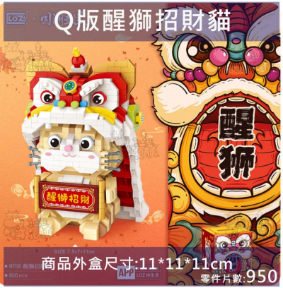 ★牛把拔★『現貨』《LOZ9258》LOZ大頭系列/Q版醒獅招財貓/新年賀禮/LOZ小顆粒min系列/益智MINI拼裝積木