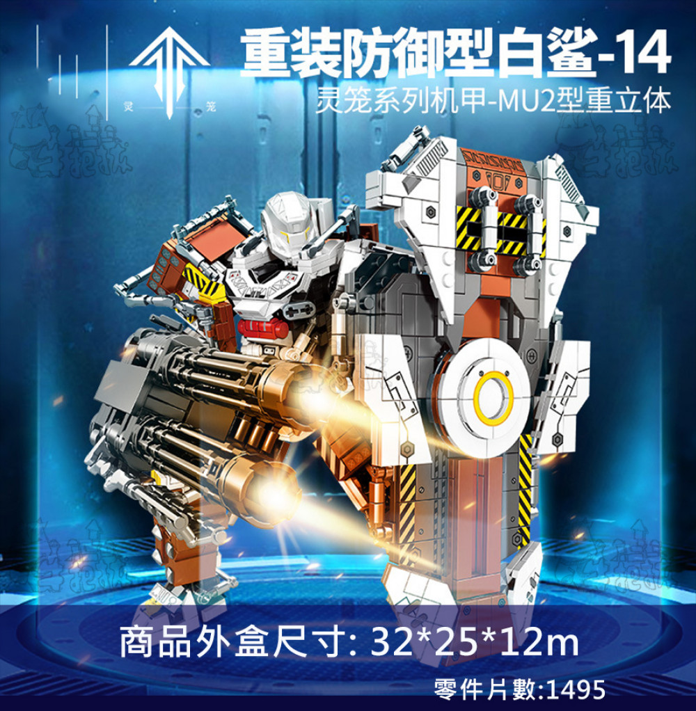 ★牛把拔★『現貨』《109008》動漫系列/MU-2型重立體重裝防禦型白鯊-14/益智拼裝積木相容樂高磚